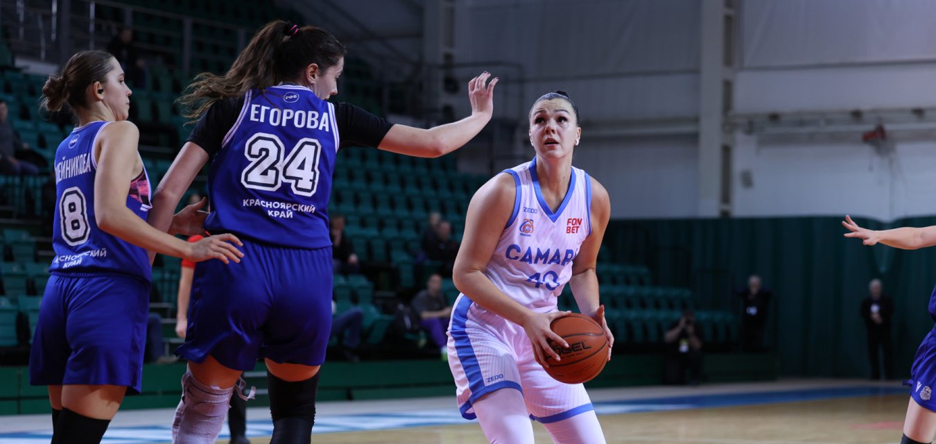 Усилиями неудержимой Юлии Полуяновой, которую поддержала Виктория Щербакова, первую четверть «Самара» все же завершила в свою пользу. Полуянова открыла и вторую десятиминутку. «Енисей» держался рядом, на расстоянии одного-двух бросков. Дальнее попадание Елены Михайловой и шикарный проход Сабины Абайдуллиной подарили хозяйкам «+5» к середине периода, а закрепить это преимущество помогли Виктория Щербакова и разыгравшаяся Елена Михайлова: за две с половиной минуты до большого перерыва хозяйки повели уже «+10». Отдыхать соперницы отправились при 8-очковом перевесе «Самары» - 42:34.