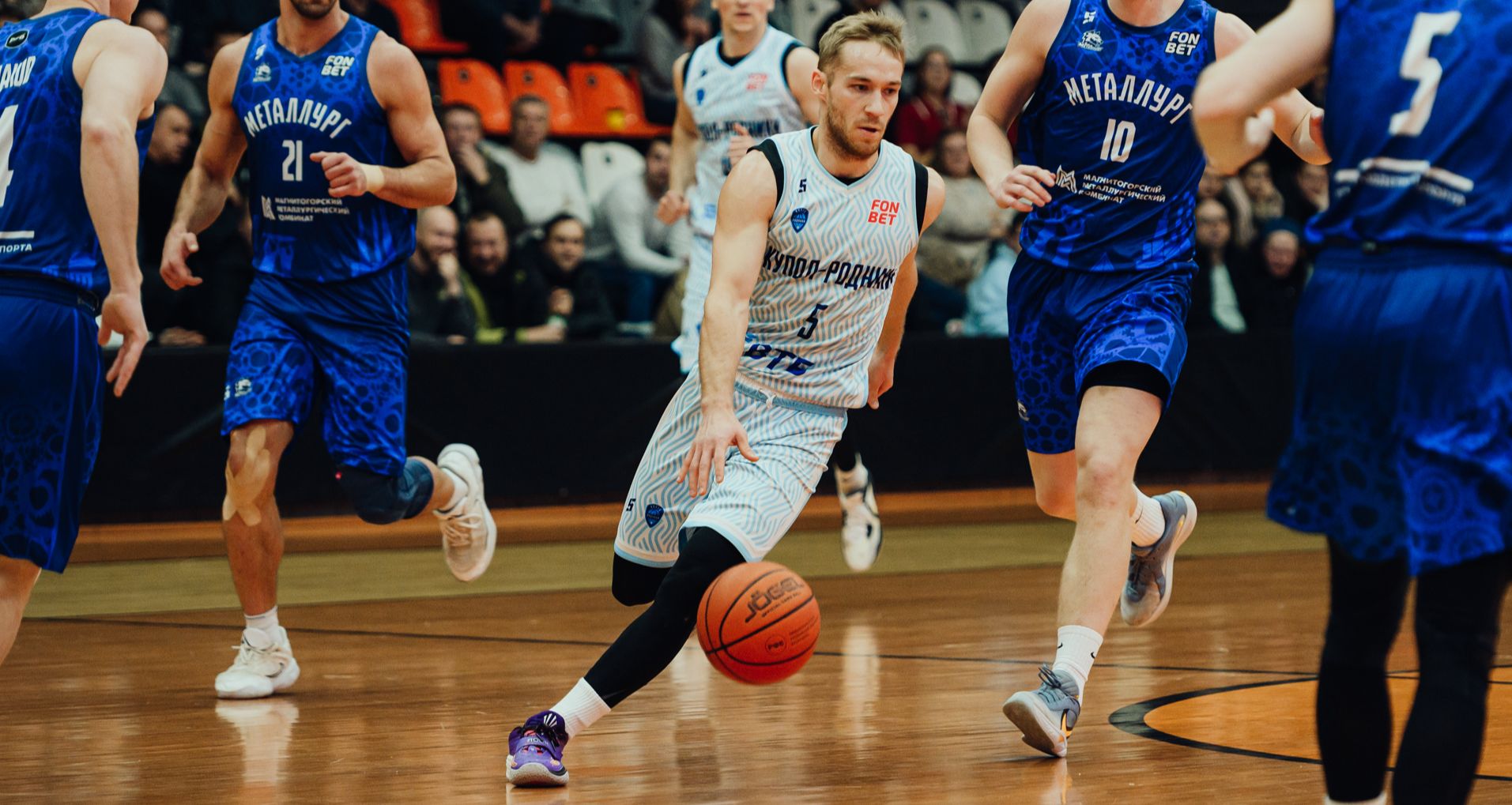 Соседи по турнирной таблице начали встречу очень аккуратно и долгое время не могли открыть счёт. Первый отрыв был у "Купола" - 9:2. После этого новый главный тренер "Металлурга" взял тайм-аут, и после паузы команда с Южного Урала провела отрезок 10:0 и вышла вперед. Кирилл Архипов получает быстрый третий фол на старте встречи и отправляется на замену. Сербский легионер "Магнитки" Михайло Богданович хорошо вписался в рисунок игры Никиты Смирнова и снова выводит гостей вперёд - 15:18.